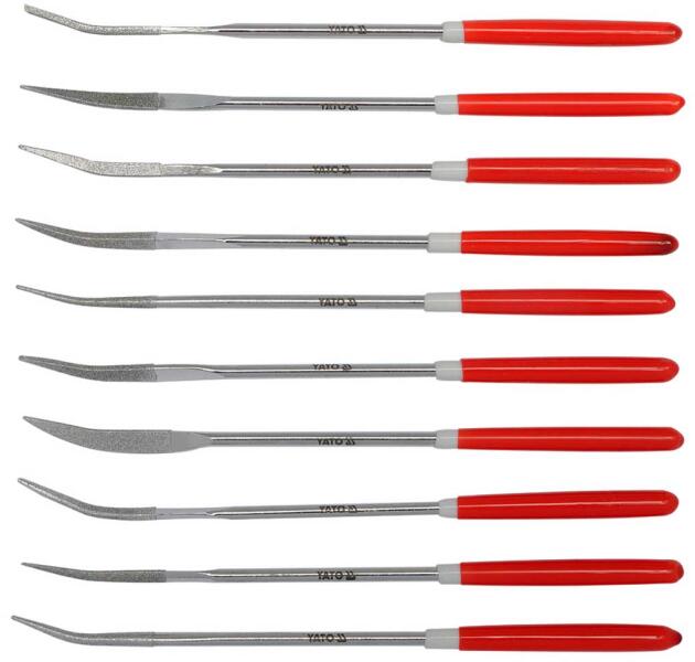 Yato Gyémánt tűreszelõ készlet, 10db, 3x140x30mm - többféle profil kialakítás - méret 3x140 mm - élhossz 30 mm EAN: 5906083961465