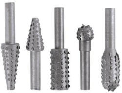 A forgó ráspolykészlet nem hiányozhat muhelyébol. A készlet 5 db 6 mm átméroju nyelu ráspolyból áll, és fúrógéphez való. Ideális fa, forgácslap és rétegelt lemez durvább polírozásához és csiszolásához.