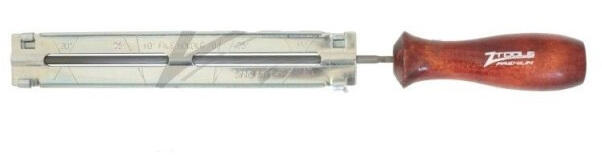 ZT Láncreszelő sablon klt. 3r. 4,0 mm Mélységhatároló-, foghossz-, élezési szög-, homlokszög ellenőrzéséhez Használható a következő láncokhoz: 4,0mm: osztás 1/4" és 3/8", vezetőszem vastagság: 1,1 és 1,3mm 10°, 25°, 30°, 35°-os szögjelölésű szögsablon Ergonomikus festett fa markolattal 200mm hosszú reszelővel