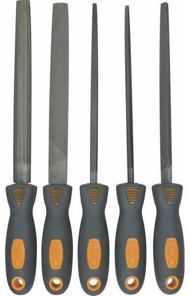A NEO fémreszelő készletben 5 db 200 mm hosszú ráspoly van, lapos, négyzetes, háromszög, félkerek és kör keresztmetszettel. Fémek reszelésére szolgál. Kiváló minőségű, nagy keménységű T12-es acélötvözetből készül. Az ergonómikus, TPR bevonatú nyél biztosítja a kényelmet és a biztonságot a munkavégzés során. A NEO márka a professzionális igényeket is kielé