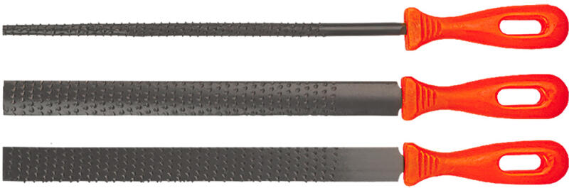Ráspoly klt. fához, 3 db?os, műanyag nyél, keresztmetszetek: lapos, kör, félkör Ráspoly klt. fához, 3 db?os, műanyag nyél, keresztmetszetek: lapos, kör, félkör