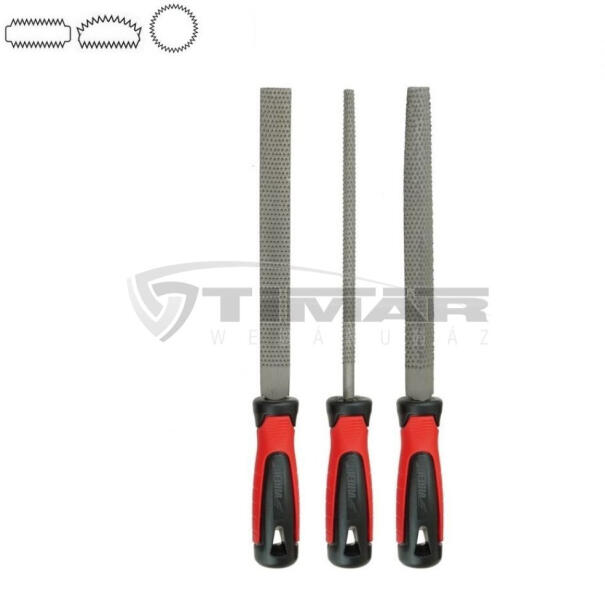 A készlet tartalma: (mindegyikből 1 db) lapos, kézi, kerek, félkerek, háromszög és négyszög reszelő. Két db reszelőnyéllel kiegészítve, PVC tasakban. Megfelel a BS498:1990 és az US Szövetségi Szabványoknak.