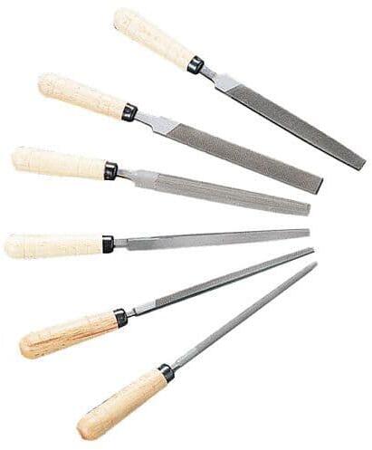 A készlet tartalma: 1 lapos kézi reszelő. 1 hegyes kézi reszelő. 1 körreszelő. 1 félkör reszelő. 1 háromszög alakú reszelő. 1 négyzet alakú reszelő.