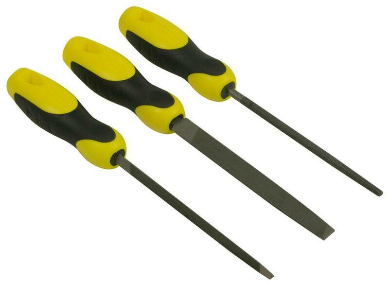 3 darabos durva reszelő készlet. Magas minőségű szénacél penge. Ergonomikus, csúszásbiztos nyél. Háromszög, lapos, kerek reszelő. 150mm hossz.