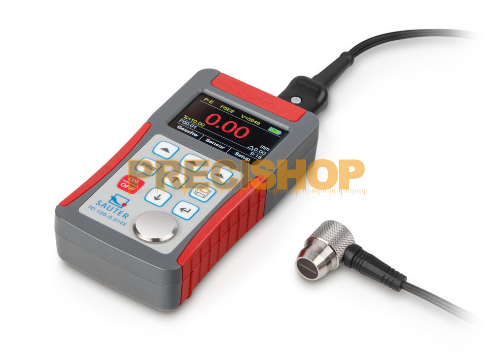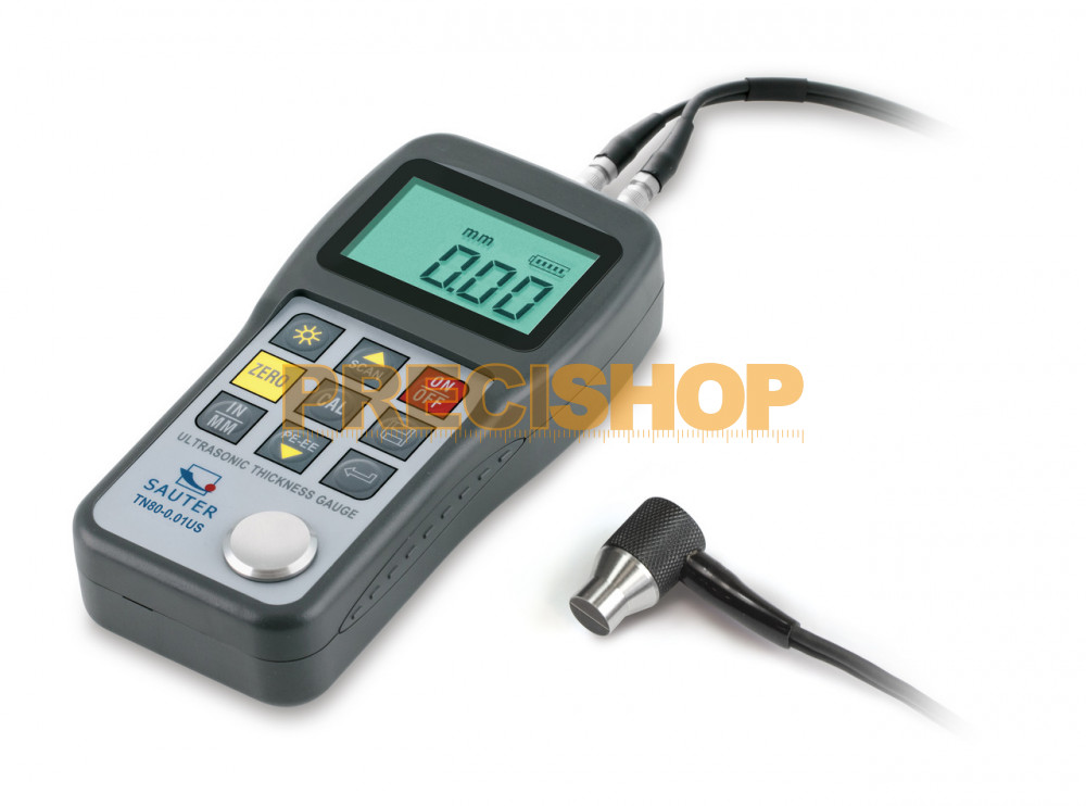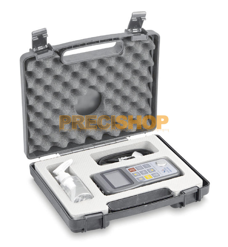 Termék részletekUltrahangos Falvastagság mérő készülék, Digitális kijelző + mérőfejjel, ellenőrző etalonnal, csatoló pasztával, 0,5%-os pontosság. Ultrahangos falvastagságmérő kéziműszer, SCAN és Pont mérés, Mérési tartomány: 3-200/0,01mm, 3-300/0,1mm mértékegységek: mm, inch, mérőfej: d=14mm/2,5MHz, állítható hangsebesség: 1000 - 9999 m/s , anyagra jellemző hangsebesség kalib