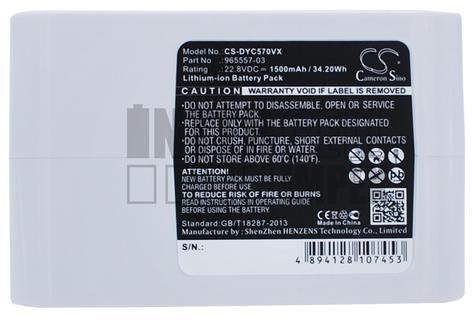 Dyson DC31 34 35 56 57 Animal Multi floor series 202932-02 917083-01 965557-03 Type-B 22.8V 1500mAh 34.20Wh Li-ion porszívó akkumulátor utángyártott. Kompatibilis készülékek: Dyson DC31 Animal, DC34, DC34 Animal, DC35, DC35 Multi floor, DC56, DC57 Kompatibilis part number : 202932-02, 917083-01, 965557-03, Type-B Tulajdonságok : Feszültség: 22.8V Kapacitás: 1500mAh 34.20Wh A csomag tar