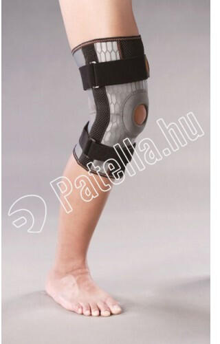 A GM-K8 zárt térdortézis jól szellőző, hálós anyagból, 2 darab kéttengelyes oldalsínnel és patella nyílást megtámasztó gyűrűvel készül. Két széles, nem rugalmas tépőzáras szíj segíti a megfelelő rögzítést. Szürke, egyedi mintázata attraktív megjelenést kölcsönöz. Megfelelő méret a comb térd feletti körmérete alapján választható.