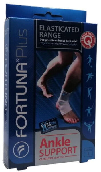 Az elasztikus bokarögzítő nyitott sarokrésszel és lábfejjel készül. 1 db-os bokaszorító; Fortuna termék sportsérülések rögzítéséhez.
