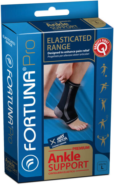 Fortuna prémium elasztikus bokaszorító L 1 db A Fortuna prémium elasztikus rögzítők egyedülálló tervezés alapján készülnek, természetes kényelmet és hatékony kompressziót biztosítva az ízületeknek. A könnyű, kényelmes, extra rugalmas anyag használata miatt egész nap hordható. A Fortuna prémium termékek egyaránt alkalmasak sportoláshoz, vagy mindennapi használatra.
