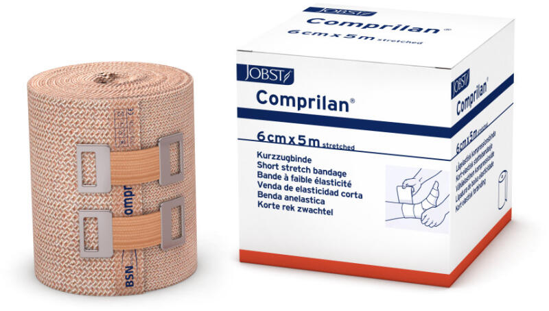 A Comprilan® egy rövid megnyúlású, 100% pamutból készült, rugalmas kompressziós pólya, amelyet kifejezetten vénás lábszárfekély, nyiroködéma és egyéb ödémák kezelésére terveztek. A Comprilan® a hosszú megnyúlású pólyákkal ellentétben nagyobb terápiás hatékonyságú kompressziót, ezáltal hatékonyabb keringés támogatást biztosít a vénás visszaáramlás és