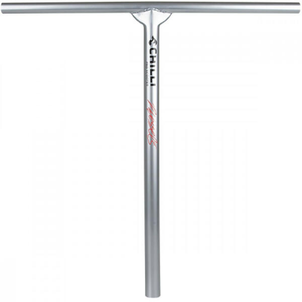 Pár éve már, hogy a Chilli Scooters pályafutása nekilódult, mára Németország minden skateparkja a lábaik előtt hódol. Széles választékát kínálják különböző szintű rollereknek és alkatrészeknek. Technikai adatok: Anyag: 4130 CrMo Méret: 60 x 60 cm Átmérő: 31.8 mm Sliccolás: nincs Kompresszió: SCS Súly: 1.33 kg
