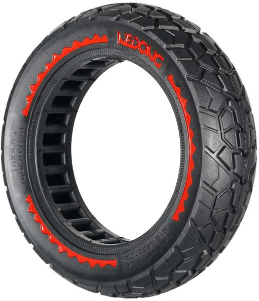 Segway Ninebot Max G30 tömör gumi V3 (10x2.5-6.5, piros, 60/70-6.5, off road)Elektromos roller alkatrész. Fekete színű, piros Nedong feliratos belső lamellás tömör gumiköpeny terep mintázattal. Használható a Segway Ninebot Max G30-as típusú elektromos rollerekhez, illetve a méretben egyező más roller típusokhoz. Előnye i- Karbantartás mentesség, nincs több defekt. - Belső l
