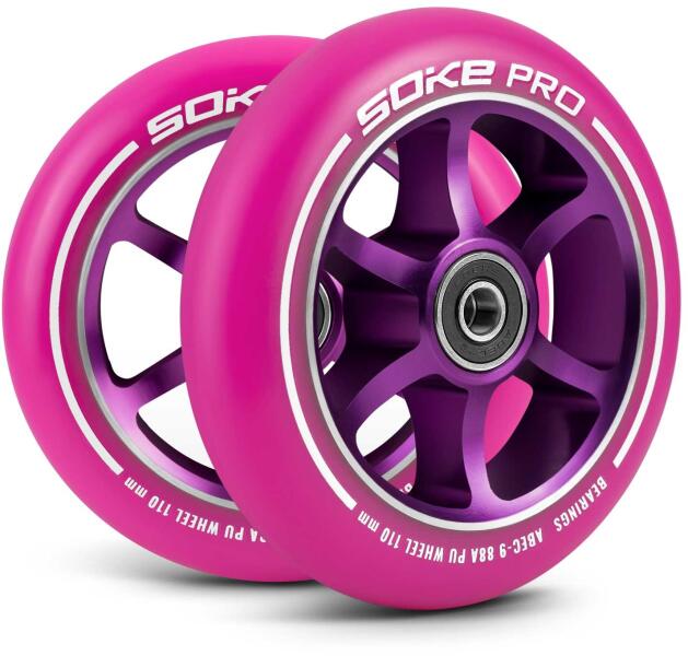 Kerekek freestyle robogóhoz EVO 110mm 88A rózsaszín 2dbALAPVETŐ JELLEMZŐK:MárkaÁtmérő: 110 mmA tengely átmérője: 8 mmCsapágyak: ABEC 9Keménység: 88AAnyag: alumínium + PUSzín: rózsaszínASOKEkerekek 88A keménységű poliuretán keverékből készülnek, és az egyik leggyorsabb csapágyazással rendelkeznek: ABEC 9. Ideálisak kemény felületekre, például aszfaltra.