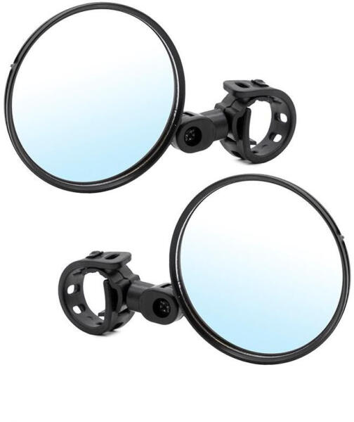 Visszapillantó tükör (1 pár, gumis felfogatás)Elektromos roller, kerékpár kiegészítő. Több fokozatban állítható gumis rögzítésű felszerelés. A tükör rész kör alakú, átmérője kb. 75 mm. Balos és jobbos tükröt tartalmaz, de a csavar kicsavarásával át lehet állítani bármelyik irányba, így egy szett akár két rollerhez is felhasználható ha csak 1 db tükröt ak