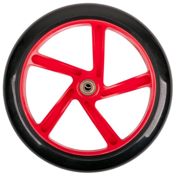 Meghibásodott a rollered első kereke, vagy csak a színkialakítást szeretnéd megváltoztatni ? A Első kerék csapággyal Discola 230x30mm rollerhez mindkét esetben tökéletes választás . A 230 x 30mm-es kerék elég nagy, és az ABEC 7 golyóscsapágyakkal együtt ideális menettulajdonságokat biztosít. A kiváló minőségű PU gumi remekül tapad a felületen és jól elnyeli az egye