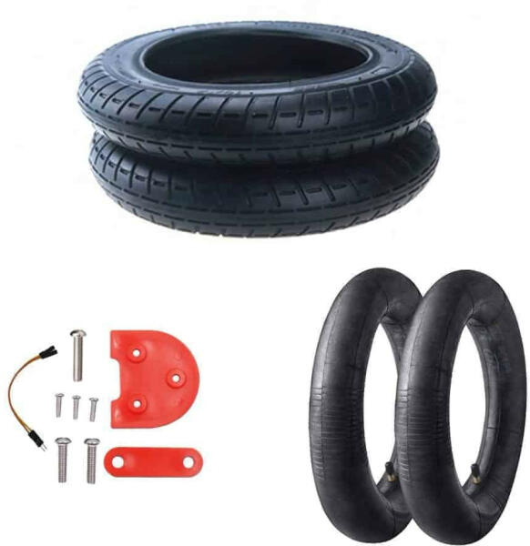 Elektromos roller alkatrész. Külső gumi átalakító szett. A szettben megtalálható minden ami ahhoz szükséges, hogy a gyárilag 8,5"-os kerékátmérőt 10"-osra növeld. A szett tartalma: 2 db 10"X2" külső gumi, 2 db belső gumi, adapterek és csavarok a sárvédő és a kitámasztó magasításához, valamint a piros színű sárvédő merevítő. Külön megvásárolva lényegesen dr