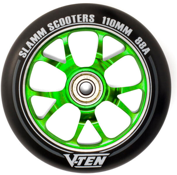 A Slamm V-Ten II 110mm kerekek egyszerűek, ám nagyszerűek, és tökéletes választást jelentenek a rolleredhez. Ezek a kerekek letisztult formavilággal rendelkeznek, amely kiváló esztétikai élményt nyújt. Az ABEC 9 csapágyak garantálják a sima és gyors gurulást, így bármilyen trükköt könnyedén végrehajthatsz. A 88A keménységű gumiköpeny biztosítja a megfelelő tapadás