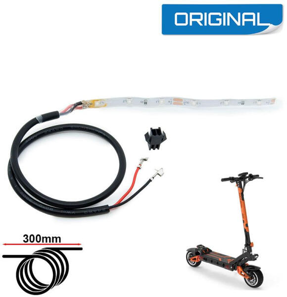 Kugoo Kirin (Kukirin) G3 Pro féklámpa LED szalagElektromos roller alkatrész. Féklámpa LED szalagja. Használható a Kugoo Kirin (Kukirin) G3 pro típusú elektromos rollerekhez. AdatokVezetékhossz: 300 mm Feszültség: 12V Teljesítmény: 0,3W Fény színe: piros