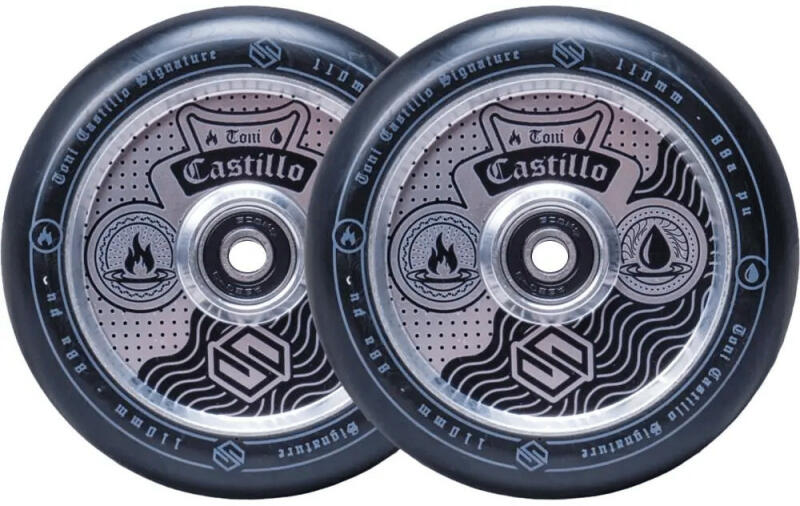 Itt van a Toni Castillo kerékszett a Striker -től, a 6061 alumíniumból készült üreges kialakítású kerékmag könnyű és ellenálló, így ideális partner minden körülmények között. Az 88A PU anyag a kerék tapadását és sebességét tökéletesen ötvözi, így kiválóan alkalmas utcai és parkos használatra egyaránt. A Striker kerek profillal tervezte a kereket, hogy stabila