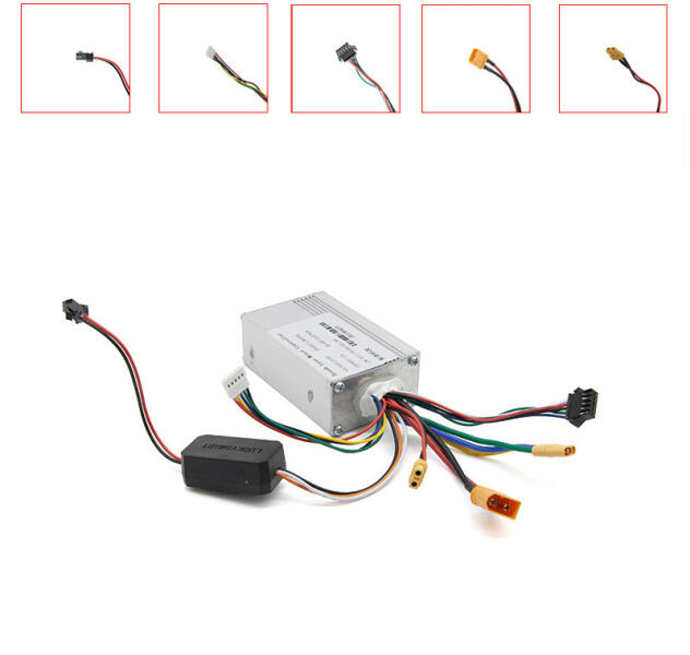 Kugoo Kirin S1, S8 Pro vezérlőVezérlő egység Kugoo Kirin S1 Pro és S8 Pro típusú elektromos rollerekhez. AdatokMaximális leadott áramerősség: 15A Mechanikai védelem: Alu tokozásban, gumi tömítéssel, a vezetékeknél kiszilikonozva. Tok hossza: 86,6 mm Tok szélessége: 53,1 mm Tok magassága: 30,4 mm