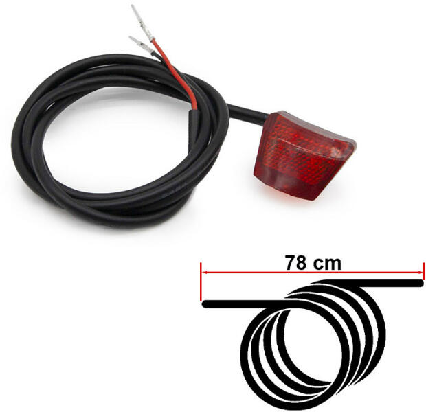 Kugoo Kirin S1, S8 Pro hátsó lámpaHátsó világítás Kugoo Kirin S1 Pro és S8 Pro típusú elektromos rollerekhez. A hátsó lámpa 78 cm hosszú vezetékkel van szerelve.