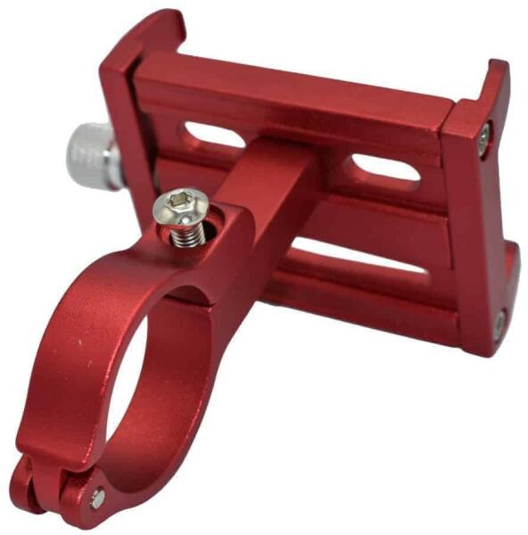 Telefontartó rollerhez (Suunik, piros)Elektromos roller tartozék. Telefon tartó elektromos rollerekhez piros színben. Anyag alumínium. 55mm-100mm között állítható.