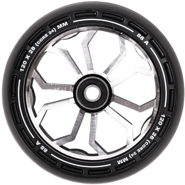 Az LMT XL Wheel 120 mm ABEC 9 roller kerék csapággyal egy két cserekerékből álló készlet freestyle rollerekhez. A kerék magjai tartós ötvözetből készültek, amely hosszú élettartamot biztosít, míg a többi kerékrész rugalmas poliuretánból, amely csendes és kényelmes működést biztosít. Átmérőjűk 120 mm, a kerekek ABEC 9 csapágyakkal vannak ellátva, ami sima és gyo