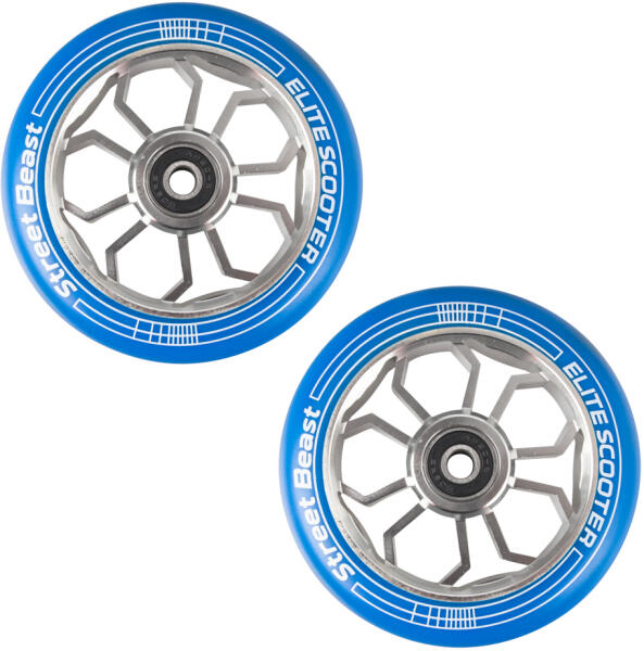 A pótkerekek freestyle rollerhez 110 mm, kék-ezüst 2 db két, freestyle rollerhez való pótkerékből álló készlet. A kerék magja ellenálló alumíniumból készült, ami hosszú élettartamot garantál, a felület pedig rugalmas poliuretánból, aminek köszönhetően a rollerezés nagyon kényelmes és csendes. A 110 mm-es kerékátmérő ABEC 9 csapágyakkal sima és gyors futást bizt