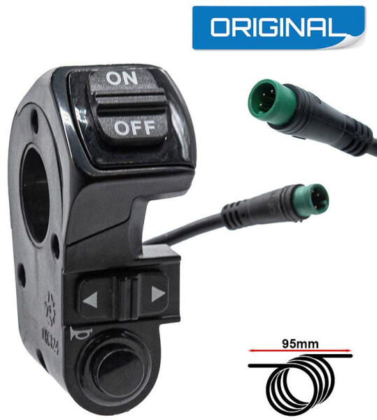 Kugoo Kirin (Kukirin) G2 Max kapcsoló panelElektromos roller alkatrész. Kapcsoló panel világítás, index, kürt kapcsolásához, vízálló HIGO csatlakozóval szerelve. Használható a Kugoo Kirin (Kukirin) G2 Max típusú elektromos rollerhez. AdatokVezetékhossz: 95 mm Magasság: 80 mm Szélesség: 32 mm Mélység: 55 mm