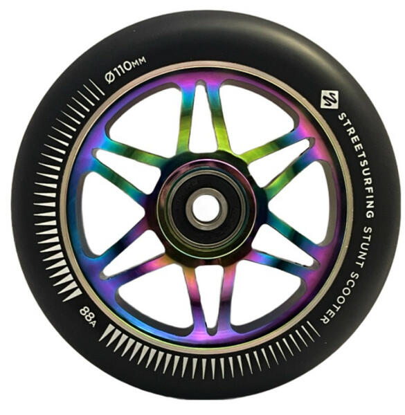 Bemutatjuk a Street Surfing teljesen új Ripper V2 küllős kerekét, a Ripper kerék kiváló geometriájú, a 88A magas visszapattanásu uretánnal párosítva ezek a roller kerekek egyszerre tartósak és nagyszerű érzést biztosítanak. A kerék kellő merevségéről a 6 x 2db küllő gondoskodik, igy válik tartóssá, de a fölösleges anyagok eltávolításával extrém könnyűvé is a