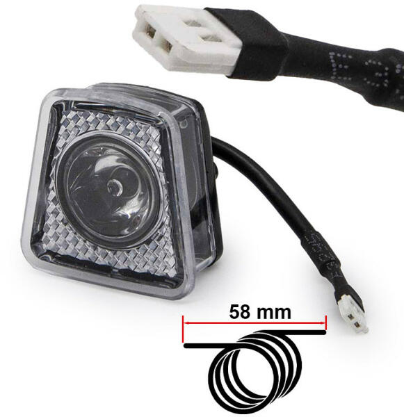 Kugoo Kirin S1 Pro, S8 Pro első lámpaElektromos roller alkatrész. Első világítás Kugoo Kirin S1 Pro és S8 Pro típusú elektromos rollerhez. 58 mm hosszú vezetékkel, 2 tűs Molex csatlakozóval szerelve.
