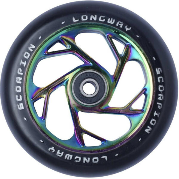 A Longway Scorpion 110mm Kerék tökéletes választás, ha rolleredhez keresel egy igazán megbízható és stílusos kereket. A klasszikus küllős dizájn nemcsak időtálló megjelenést kínál, de a 6061-T6 alumíniumötvözetből készült kerékmagnak köszönhetően könnyű és strapabíró is. A 88A keménységű poliuretán felület ideális tapadást és gyorsaságot biztosít, legyen
