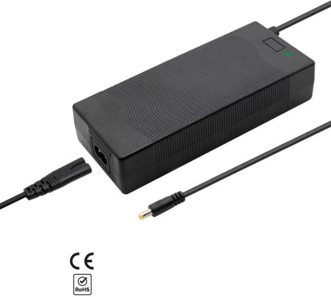 Roller töltő DC5521 (prémium minőség, 48V, 2A, CE)Elektromos roller, elektromos kerékpár tartozék. Számos elektromos kerékpárhoz és elektromos rollerhez használható LI-Ion-os töltő DC5521-es csatlakozóval szerelve, 48V-os akkumulátorok töltésére. Tulajdonságok:- CE tanusítvány - Rövidzár védelem - Túlfeszültség védelem - Fordított polaritás védelem - Zaj kibocsáj
