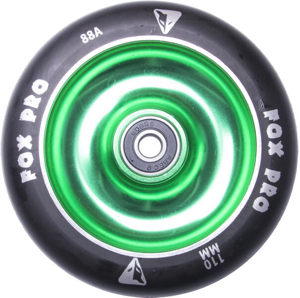 FOX PRO Raw 110 mm roller kerék poliuretán anyagból készült alumínium középrésszel. A roller kerék ABEC 9 gyorscsapágyakkal felszereltek, melyek freestyle rollerekhez alkalmasak, minimális gördülési ellenállással. Minőségi anyagok, hosszú élettartam, jó tapadás- ezek mind a FOX PRO Raw 110 mm roller kerék szuper jó tulajdonságai. A FOX PRO Raw 110 mm roller kerék ideáli