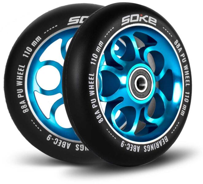 Kerekek freestyle robogóhozALAPVETŐ JELLEMZŐK:MárkaÁtmérő: 110 mmTengelyátmérő: 8 mmCsapágyazás: ABEC 9Keménység: 88AAnyag: alumínium + PUSzín: kékA SOKE kerekek 88A keménységű poliuretán keverékből készülnek, és az egyik leggyorsabb csapágyazással rendelkeznek: ABEC 9. Ideálisak kemény felületekre, például aszfaltra. A SOKE harcos szelleme mindig veled van... SKE