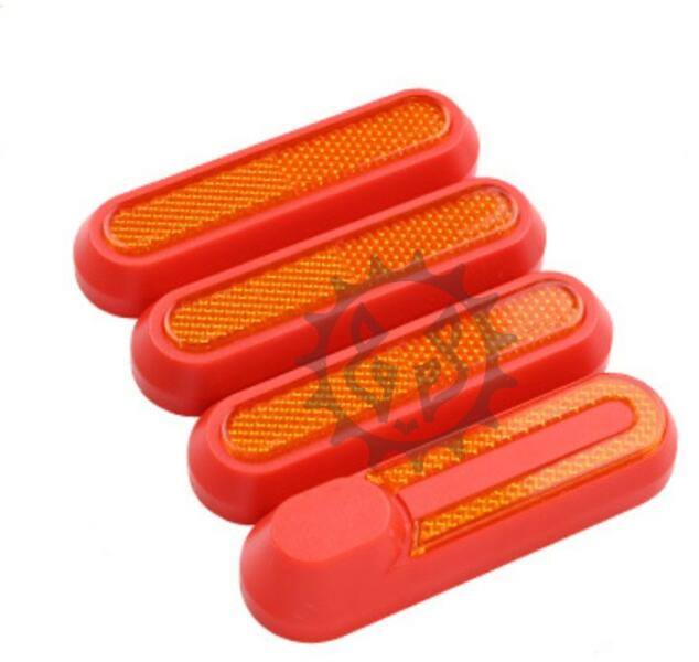 Elektromos roller alkatrész. Piros színű csavarvédő burkolat borostyánsárga beépített fényvisszaverő prizmákkal. V2-es változat. Használható a XIAOMI M365, 1S, Essential, PRO, PRO2, MI3, MI3 Lite típusú elektromos rollerekhez.