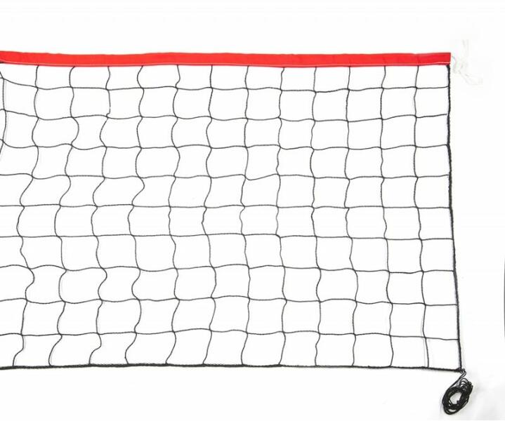 Fekete színű röplabdaháló. A röplabdaháló anyaga 3 mm-es vastagságú csomómentes, UV ellenálló polipropilén Kültéren is használható. Vastagsága: 3 mm A felső szegény 50 mm, az alsó szegény 35 mm. Hálóosztása: 10x10 cm. Acélhuzal merevítés: 5 mm Technikai adatok: - Hosszúság:9.5 m - Magasság:1 m - Anyag:Polipropilén - Szálvastagság:3 mm - Lyukbőség:10 x 10 cm