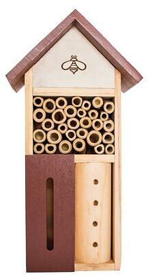 PetBuddy házikó méhecskével, rovarhotel, 13 x 8.5 x 26 cm, fenyőfa, rovarház méhkaptár motívokkal természetes anyagokból készült nem kívánt kötőelemek nélkül - kapcsok és szögek anyag: fenyőfa méretek: 13 x 85 x 26 cm szín: természetes, barna