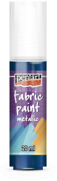 Pentart Textilfesték metál kék 20 ml 6259 Vízbázisú, jól fedő festék textil díszítésére. Ecsettel, szivaccsal, de közvetlenül a flakonból is felhordható. A megfestett mintát száradás után pamut fokozaton előmelegített vasalóval, vasalópapíron keresztül vasaljuk 30 másodpercig. Az így díszített textil kifordítva, kímélő programmal mosható. Metál színek. Termék