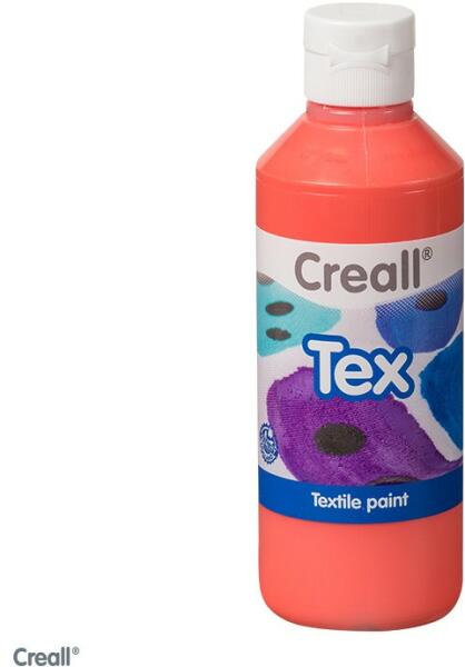 Creall TextilfestékKiszerelés: 500 mlSzín: Narancssárga Creall Textilfesték 500 ml - Narancssárga Kiváló minőségű, ecsettel felvihető textilfesték. A textilfesték vízzel hígítható, száradás után a színén vasalópapíron keresztül, pamut fokozaton, gőz nélkül fixáljuk a mintát. Vagy a hátoldalán, szintén pamut fokozaton, gőz nélkül átvasalható. Fixálás után a