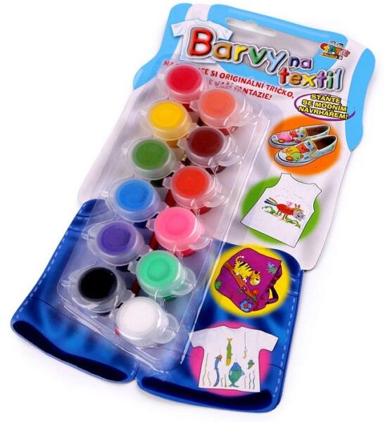 Vízálló textilfesték Textilfesték készlet trikók, táskák, abroszok díszítésére. A festék vízálló. Használata: Az anyagot előbb ki kell mosni. Ha az anyag duplán van, pl pólók esetén, helyezzünk egy vastagabb papírlapot, kartonpapírt közé, hogy a festék ne üssön át a másik oldalára. A festék első rétegét hagyjuk 2-3 órát száradni. Ha szükséges, egy másodi