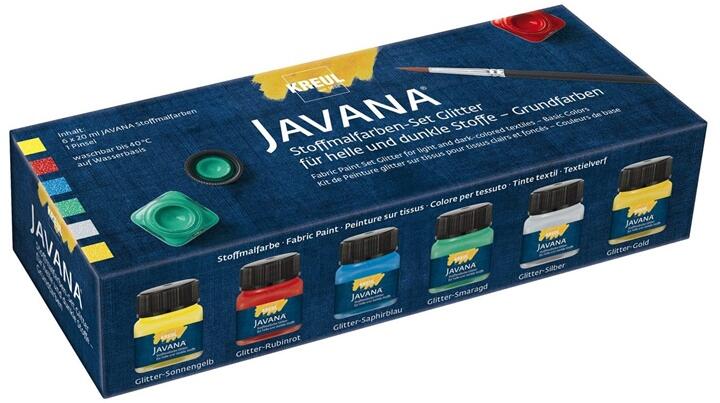Textilfesték szett világos textilre JAVANA 5x50 ml A textilfestéke szett JAVANA speciális hobbi festék alkalmas világos színű textilanyagok festésére. A festék folyékony jellegű, nagyon jól pigmentált és a színei élénkek. A színskála 6 gyönyörűen briláns, fluoreszcens pigmenteket tartalmazó színt is tartalmaz. A színek nagyon mélyen a szövetekbe hatolnak. Vízalapú f