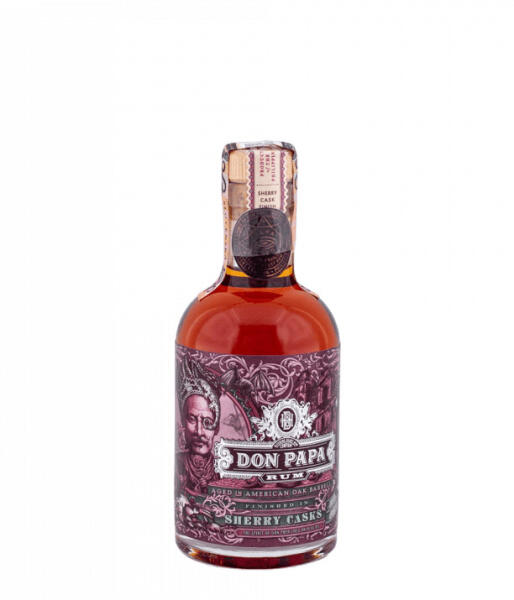 Don Papa Sherry Casks mini 45%25 0,2l A Don Papa Sherry Casks mini, ahogy a neve is sugallja, sherry hordókban való érleléssel nyeri el kiváló ízét és leírhatatlan aromáját. Összességében az ex-bourbon hordókban való érlelés után ez a rum négy különböző sherry hordóban pihen (Palo Cortado, Pedro Ximenéz, Cream és Fino), így a végén egy igazán gyümölcsös karaktert