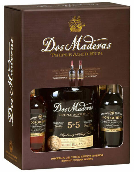 A Dos Maderas PX 5+5years rum származási helye a karibi térség, Barbados és Guyana. Az ital különleges nevét előállításának különleges módjáról kapta. A Dos Maderas rum első érlelése öt évig történik amerikai tölgyfahordókban a Karib-térségben, majd ez után az italt átszállítják Spanyolországba, ahol további öt éven keresztül érlelik spanyol tölgy (sherry)