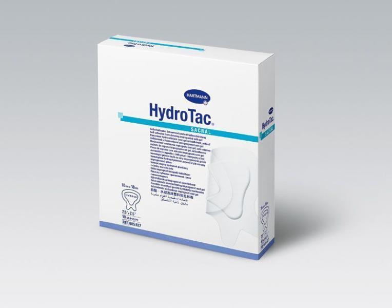 Háromrétegű hidroaktív habszivacskötszer granulációs és epitelizációs szakaszban lévő sebek kezeléséhez HydroTac® sacral Speciális alakú kötszer a keresztcsonttáji terület ellátásához. A biztos és baktériumzáró rögzítés érdekében körbefutó öntapadó szegéllyel ellátott. Jellemzők A HydroTac® az innovatív AquaClear technológiának köszönhetően a száraz s