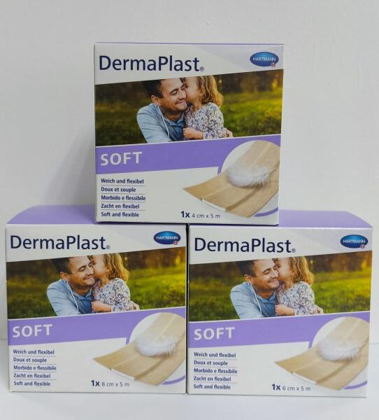 DermaPlast soft vágható sebtapasz . Különböző típusú, nem allergizáló sebtapasz különösen jó nedvszívó képességű sebpárna, mely nem ragad a sebbe; bőrbarát ragasztóanyaggal; megbízható tapadás; légáteresztő. Kisebb sérülések kezelésére, alkalmas érzékeny bőrre is. Mielőtt alkalmazná, győződjön meg róla, hogy a bőr száraz és tiszta. Bőrbarát, hypoalle