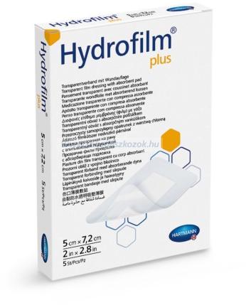 Átlátszó filmkötszer sebpárnával Sebpárna méret: 2,5x4cm A vízálló Hydrofilm® Plus filmkötszer átlátszó, jól tapad a sebkörnyéki bőrre, és különösen jó bőrbarát tulajdonságokkal rendelkezik. Jellemzők Öntapadó, átlátszó filmkötszer nedvszívó sebpárnával, amely nem ragad a sebbe. Baktérium-és vízálló, félig áteresztő, poliuretán fóliából készül,
