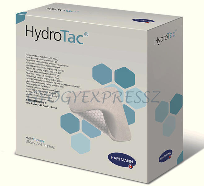 Polimer steril kötszer 10 db/csomag A közölt ár 1 db kötszerre vonatkozik! 5 x 7,5 cm Modern kötszer: Háromrétegű hidroaktív habszivacskötszer granulációs és epitelizációs szakaszban lévő sebek kezeléséhez. A HydroTac az innovatív AquaClear technológiának köszönhetően a száraz sebnek is megfelelő nedves környezetet biztosít, ezáltal a hidroaktív kötszer megakadály