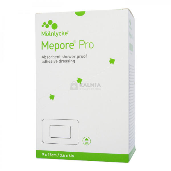 A Mepore® Pro öntapadó, nedvszívó és légáteresztő kötszer az enyhén és közepesen váladékozó sebek kezelésére. A külső filmréteg védi a sebet a víztől és a szennyeződéstől, így zuhanyozás közben is viselhető. A nedvszívó sebpárna alacsony tapadású, sebbel érintkező réteggel rendelkezik, így kényelmesen viselhető és a helyén marad. Bőrbarát, vízbázis