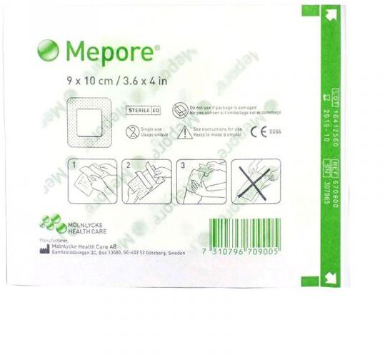 A légáteresztő Mepore® olyan öntapadó kötszer, amely felszívja a vért és a váladékot. A védőfilm vízlepergető, ami megvédi a sebet a külső szennyeződéstől. A Mepore kíméletes rögzítést biztosító, bőrbarát sebtapasz. Könnyen használható, könnyen alakítható és kényelmes a beteg számára. Bőrbarát ragasztóanyag a kötszer kíméletes rögzítéséhez és elt